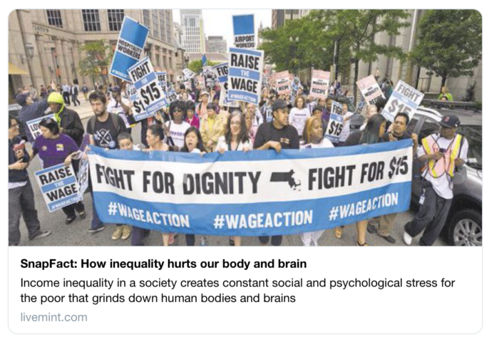 La disuguaglianza può danneggiare le nostre economie, le nostre società e anche i nostri corpi. Robert M. Sapolsky della Stanford University utilizza molti studi medici per dimostrare come la disuguaglianza sta danneggiando i nostri outcome di salute.