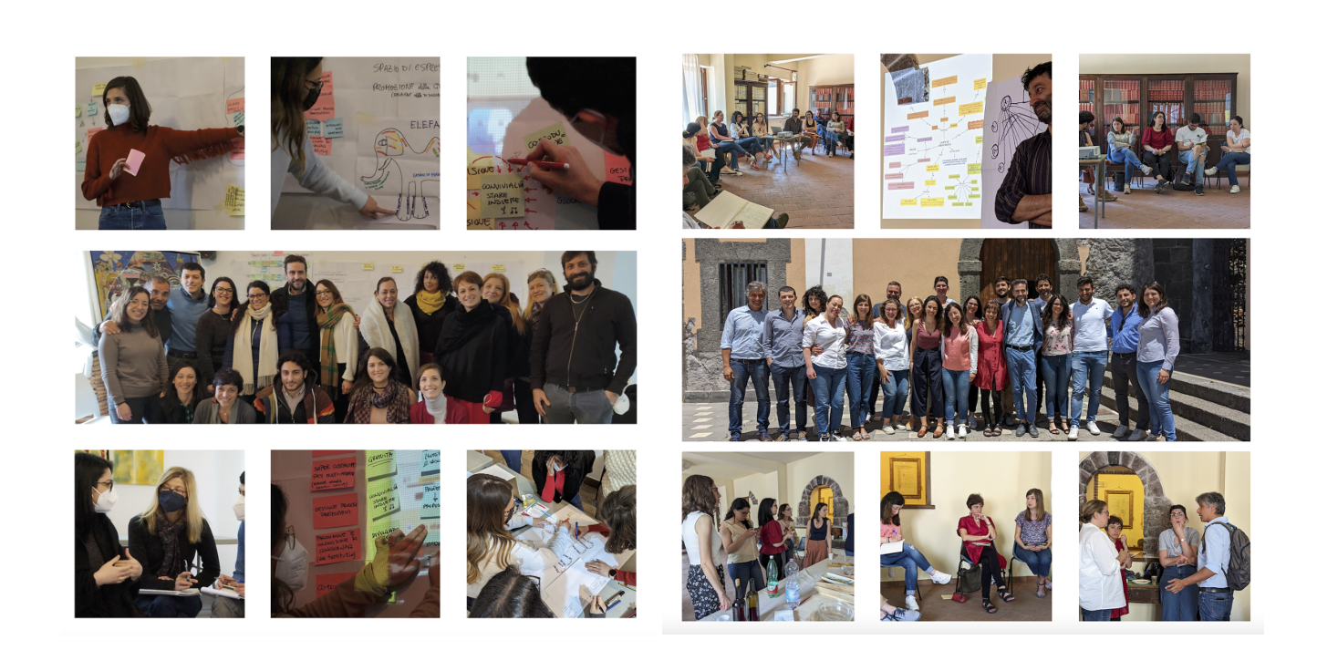 Nell’ambito di questo percorso a fine 2019 abbiamo deciso di provare a dar forma ad un sogno che la componente “giovane” del Presidio Partecipativo coltivava da anni: riuscire a trasformare l’impegno gratuito prestato fino a quel momento come volontari di un’associazione, in una sfida professionale dando vita ad un’organizzazione (concepita come uno spin-off) che diventasse luogo di implementazione di azioni per lo sviluppo territoriale. Un tale cambiamento non è mai “neutrale” e dà sempre luogo a conflitti nelle organizzazioni, incide sia sulle dinamiche relazionali interne tra gli stessi membri, che sui “rapporti di forza” tra l’organizzazione stessa ed altri attori sociali, vedi ad esempio il mondo delle professioni, organizzazioni del terzo settore, enti di ricerca, ecc. Sapevamo di essere totalmente impreparati ad una sfida del genere e proprio per questo abbiamo immaginato un percorso di accompagnamento sul campo che è stato sostenuto da Fondazione CON IL SUD nell’ambito del progetto “ReCap Simeto. Reti capacitanti nella valle del Simeto”. Abbiamo così co-progettato, con l’aiuto di tre “accompagnatori esterni”, tutto il percorso identificando tematiche da approfondire, esperti di settore con i quali confrontarci, organizzazioni territoriali da conoscere. È stata un’occasione per fermarci a riflettere, immaginarci nel futuro e pensare a “cosa voler fare da grandi”. I numerosi incontri, i momenti di riflessione collettiva ci hanno restituito nuove traiettorie da intraprendere e nuovi orizzonti da esplorare collettivamente. Opportunità che non riuscivamo a vedere prima, alla fine del percorso sono diventate possibilità concrete, strade da percorrere per orientare il cambiamento.