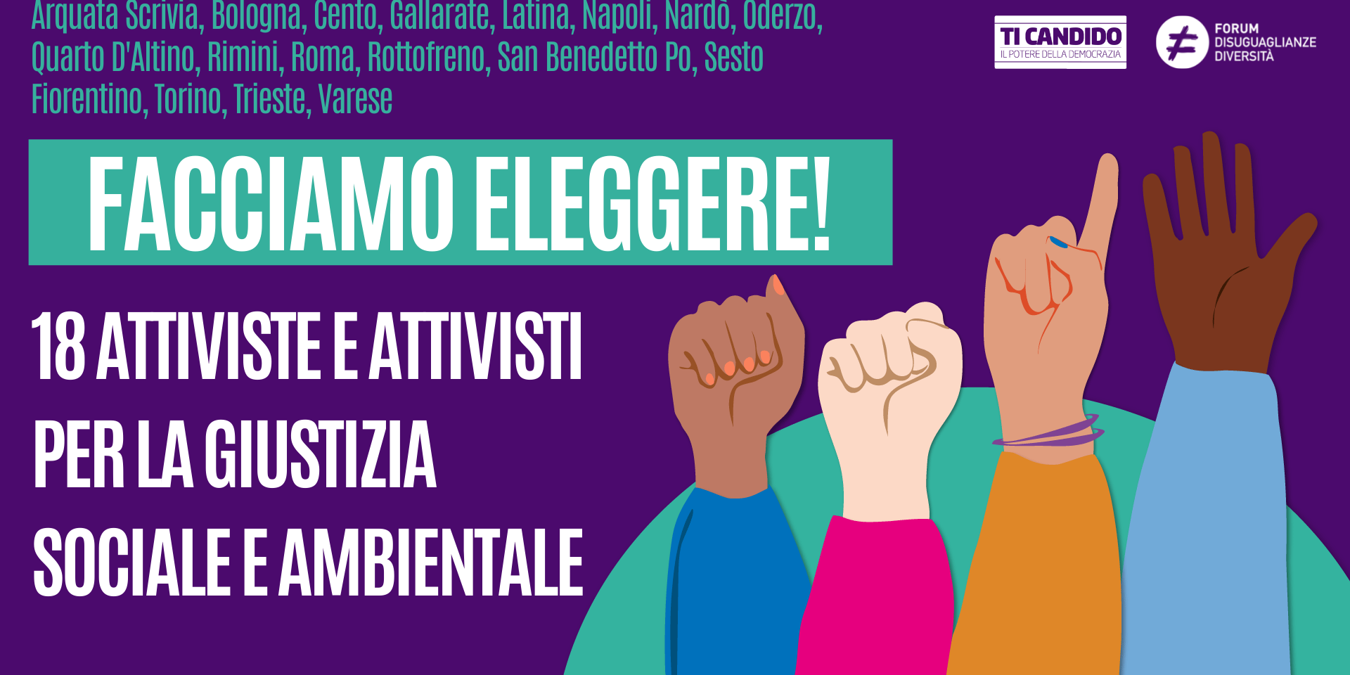 Sono 120 le persone che nei mesi scorsi si sono proposte per aderire all’iniziativa, per ottenere così il sostegno economico e la formazione della campagna #FacciamoEleggere: ad agosto, un gruppo composto da esponenti del Forum Disuguaglianze e Diversità e Ti Candido ha studiato i loro profili, le motivazioni dietro la loro candidatura, il contesto e le alleanze locali.
