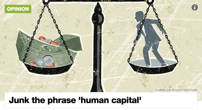 “Buttiamo l’espressione ‘capitale umano’! Offusca la distinzione fra lavoro e capitale e induce a pensare che siamo tutti capitalisti. Dimenticando la fondamentale distinzione per cui se vuoi ricavare reddito dal capitale umano devi lavorare, non così per il reddito da capitale finanziario.”