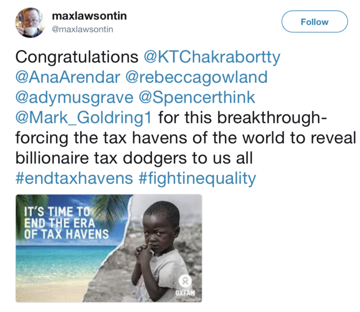 Obblighiamo i paradisi fiscali nel mondo a rivelare a tutti noi i miliardari evasori.