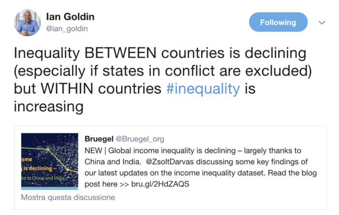 GOCCIA – Non si dà sufficiente importanza alla crescita della disuguaglianza dei redditi di mercato