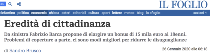 La lettera, scritta da Elena Granaglia e Salvatore Morelli, è stata pubblicata su Il Foglio (12 febbraio 2020). E’ stata scritta in risposta all’articolo sull’eredità di cittadinanza firmato da Sandro Brusco, pubblicato su Il Foglio.