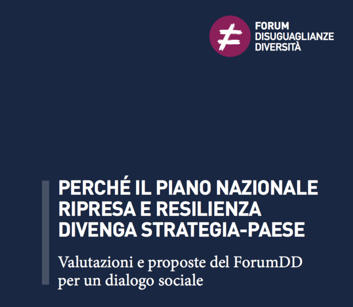 Inviato al Presidente del Consiglio Giuseppe Conte e ora reso pubblico, il documento del Forum Disuguaglianze e Diversità analizza punto per punto la bozza del Piano Nazionale Ripresa e Resilienza che stasera tornerà all’attenzione del Consiglio dei Ministri, per la discussione e la possibile approvazione. Avanzando alcune proposte, il Forum si prepara a quel confronto pubblico indispensabile per la qualità e il successo del Piano.
