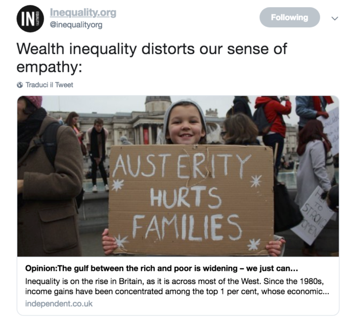 La disuguaglianza di ricchezza alterna la nostra capacità di provare empatia.