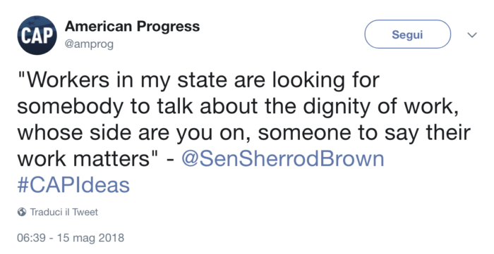 “I lavoratori… sono alla ricerca di qualcuno che riconosca la dignità’ del loro lavoro”, Sen. Sherrod Brown – Senatore degli Stati Uniti d’America @SenSherrodBrown
