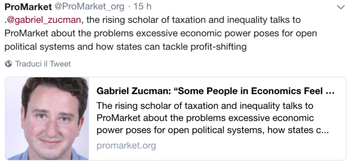 “La ricchezza è potere ed un’estrema concentrazione della ricchezza equivale ad un’estrema concentrazione del potere. Questo dovrebbe preoccuparci tutti.” – Gabriel Zucman – Professore di Economia University of California Berkeley