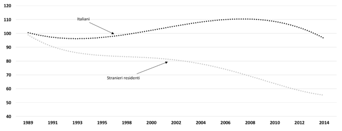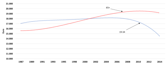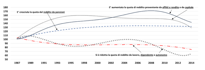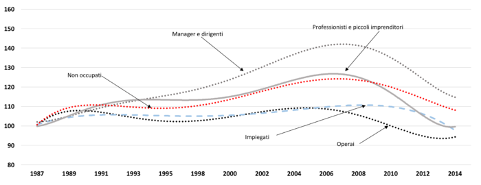 Fonte: Vecchi, G, (2017) “Measuring Wellbeing. A History of Italian Living Standards” Oxford University Press. Dati estratti da: A. B. Atkinson, J. Hasell, S. Morelli e M. Roser (2017) “The chartbook of economic inequality” Il grafico presenta il trend della disuguaglianza di reddito misurata attraverso l’indice di Gini. La disuguaglianza, in calo fino agli anni…