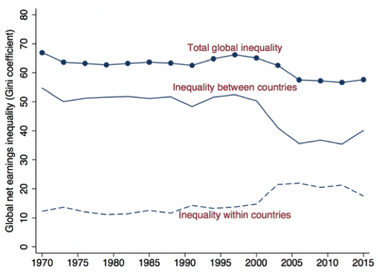 Fig.1: Disuguaglianza salariale globale, tra paesi e all’interno dei paesi (1970 – 2015)
