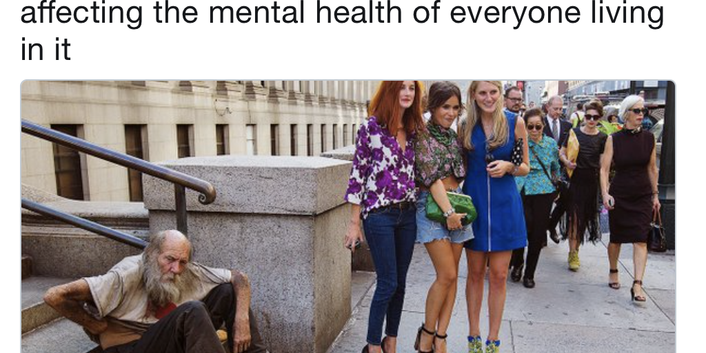 Giu262018Una goccia al giorno Quando la distribuzione del reddito è troppo diseguale, la società inizia a funzionare male, influenzando la salute mentale di tutti quelli che vi vivono. The Economist – News and analysis with a global perspective. LEGGI L’ORIGINALE PER APPROFONDIRE IL PENSIERO DEL FORUM Condividi questo post Share on FacebookShare on Facebook Share on XShare on X Share on WhatsAppShare on WhatsApp Articoli correlatiGOCCIA- La povertà ha molte dimensioni oltre a quella monetaria11 Marzo, 2019GOCCIA- La crisi economica più grave che stiamo affrontando riguarda il mostruoso livello di disuguaglianza10 Marzo, 2019GOCCIA- Le nuove tecnologie offrono molteplici opportunità, ma se non saranno regolate prevarrà il “lato oscuro”9 Marzo, 2019GOCCIA- Dovremmo sviluppare innovazioni che promuovono l’inclusione sociale e possono salvare il pianeta7 Marzo, 2019GOCCIA- Potrebbe aumentare la disuguaglianza all’interno dei paesi e diminuire quella tra paesi6 Marzo, 2019GOCCIA- Tra tutte le nazioni ricche, gli Stati Uniti sono quelli con la maggiore disuguaglianza di ricchezza5 Marzo, 2019