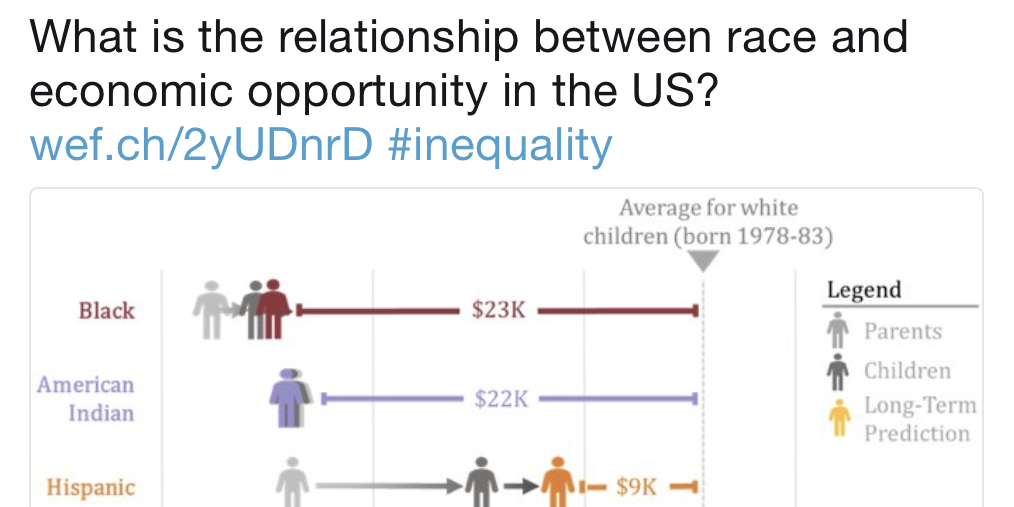 Lug222018Una goccia al giorno Qual’è la relazione tra etnia e opportunità economiche negli Stati Uniti? World Economic Forum – The international organization for public private cooperation. LEGGI L’ORIGINALE PER APPROFONDIRE IL PENSIERO DEL FORUM Condividi questo post Share on FacebookShare on Facebook Share on XShare on X Share on WhatsAppShare on WhatsApp Articoli correlatiGOCCIA- La povertà ha molte dimensioni oltre a quella monetaria11 Marzo, 2019GOCCIA- La crisi economica più grave che stiamo affrontando riguarda il mostruoso livello di disuguaglianza10 Marzo, 2019GOCCIA- Le nuove tecnologie offrono molteplici opportunità, ma se non saranno regolate prevarrà il “lato oscuro”9 Marzo, 2019GOCCIA- Dovremmo sviluppare innovazioni che promuovono l’inclusione sociale e possono salvare il pianeta7 Marzo, 2019GOCCIA- Potrebbe aumentare la disuguaglianza all’interno dei paesi e diminuire quella tra paesi6 Marzo, 2019GOCCIA- Tra tutte le nazioni ricche, gli Stati Uniti sono quelli con la maggiore disuguaglianza di ricchezza5 Marzo, 2019