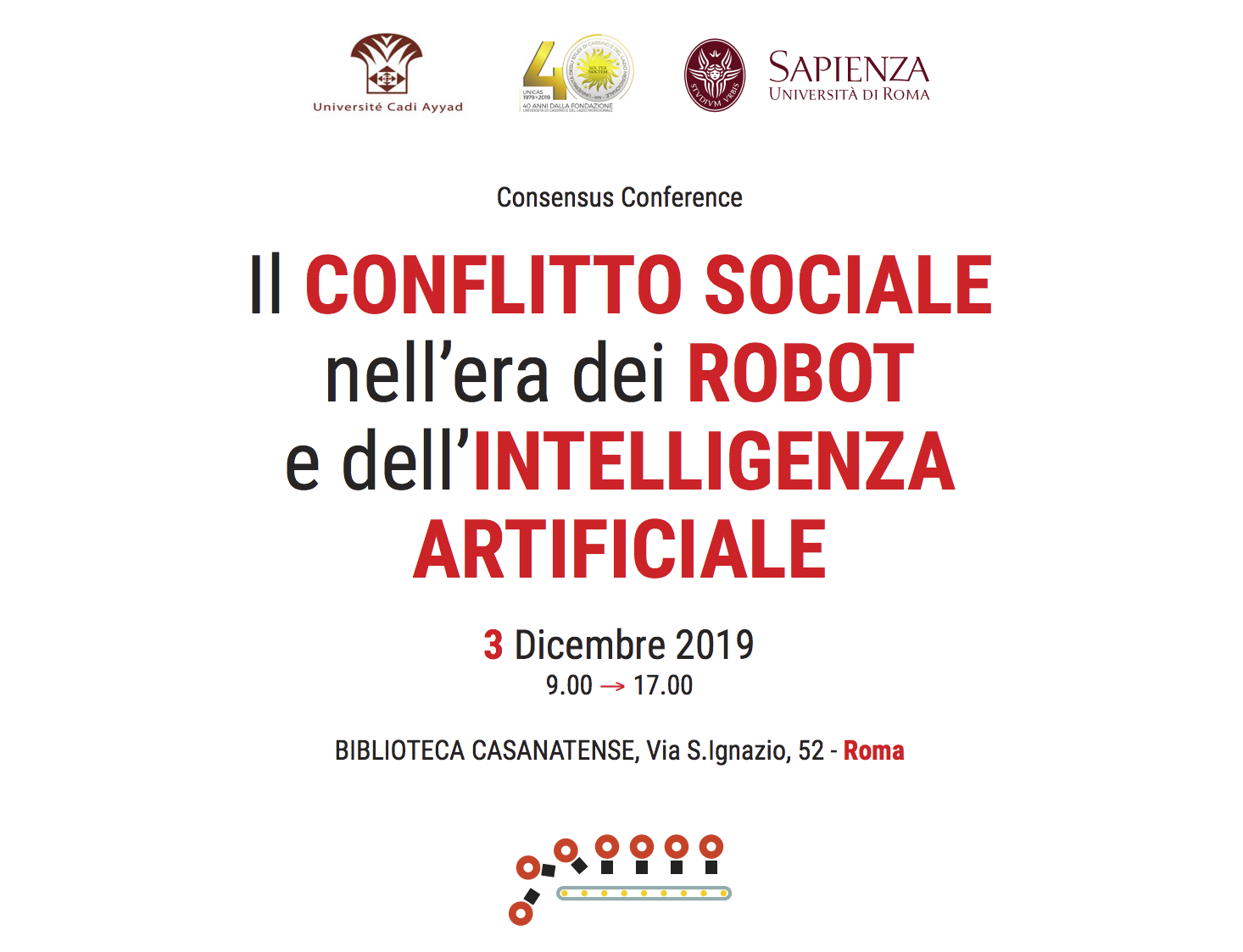 Il 3 Dicembre 2019 dalle ore 9.00 alle 17.00 presso la Biblioteca Casanatese, Via S.Ignazio, 52 – Roma, si svolgerà il convegno dal titolo “Il conflitto sociale nell’era dei robot e dell’intelligenza artificiale”.