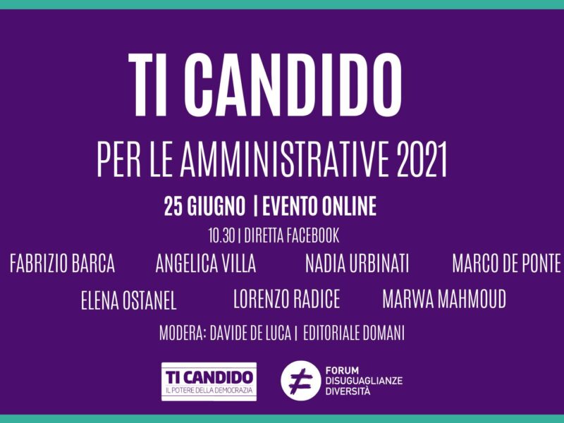 Alle elezioni amministrative dell’autunno 2021 abbiamo quindi deciso di mettere a disposizione i nostri saperi per sostenere un processo che contribuisca a promuovere nuove forme di rappresentanza e una partecipazione attiva della società civile, oltre che a rimuovere barriere all’entrata alla rappresentanza amministrativa, contribuendo a costruire una nuova classe dirigente competente, attenta ai luoghi e alle persone. E’ nata così #FacciamoEleggere – campagna co-promossa insieme a Ti Candido, che già da tre anni sostiene candidature dal basso e con cui condividiamo un comune modo di intendere i processi di trasformazione della società raccolto in un memorandum – che ha l’obiettivo di sostenere candidate e candidati con forti motivazioni e capacità e impegnati per la giustizia sociale e ambientale. Candidati e candidate, soprattutto giovani, che mettano al centro del loro impegno: la lotta alle disuguaglianze e la valorizzazione delle diversità, la tutela dei diritti e delle libertà individuali, la prospettiva di genere e la tutela dell’ambiente e dei beni comuni; che siano espressione di comunità, di alleanze sociali e coalizioni civiche territoriali; che ambiscano a essere un ponte tra gli interessi dei meno rappresentati ed i luoghi della decisione. Giovani che spesso rischiano di rimanere esclusi o non considerati solo perché fuori dai percorsi tradizionali dei partiti e quindi per diseguali condizioni di partenza.