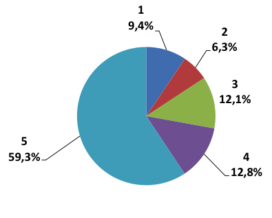 Figura 6: “Sei economicamente autonomo?” – percentuali sul totale degli intervistati (intervallo da 1 – non autonomo – a 5 – totalmente autonomo). Voto medio 4,06