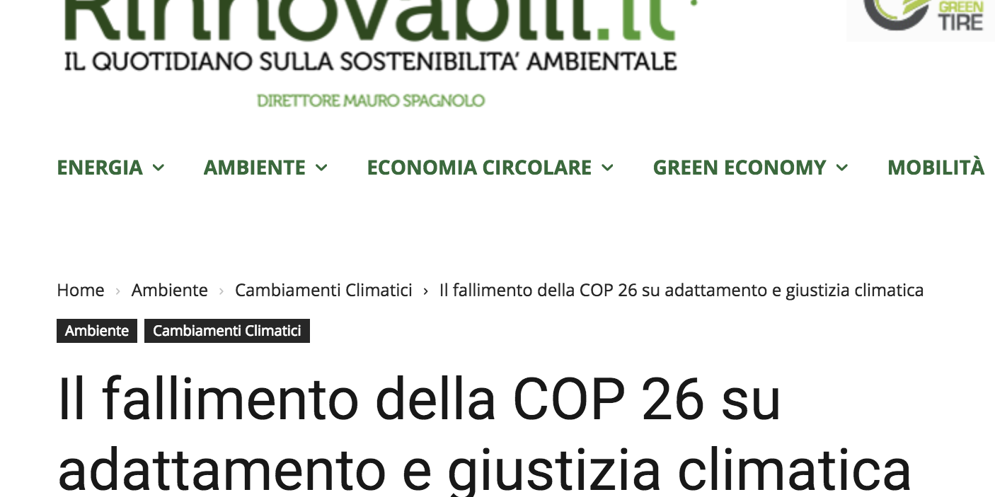 Sono stato facile profeta quando su Rinnovabili.it, dopo le grandi manifestazioni del 5 e 6 novembre, a metà della COP26, scrivevo La giustizia climatica s’è persa tra le strade di Glasgow e preannunciavo: “la giustizia climatica sarà molto probabilmente il grande escluso dall’accordo finale”. Così è stato!