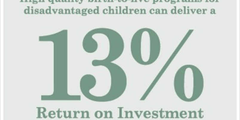 Il tasso di rendimento per gli investimenti nell’istruzione di qualità per la prima infanzia è del 13% l’anno, attraverso risultati migliori in termini di istruzione, salute, produttività, riduzione del crimine e socievolezza.