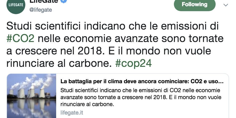 Studi scientifici indicano che le emissioni di #CO2 nelle economie avanzate sono tornate a crescere nel 2018. E il mondo non vuole rinunciare al carbone.