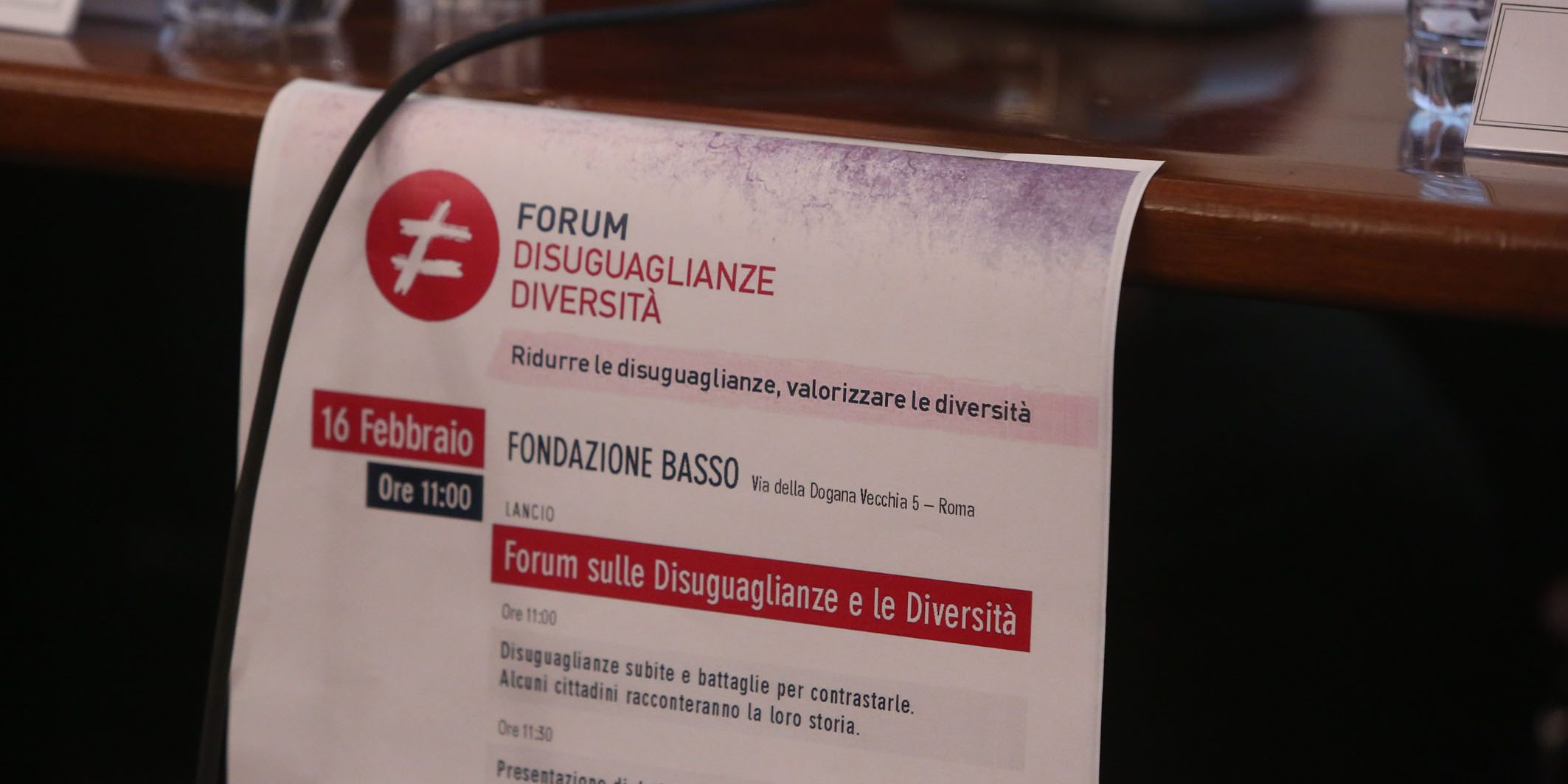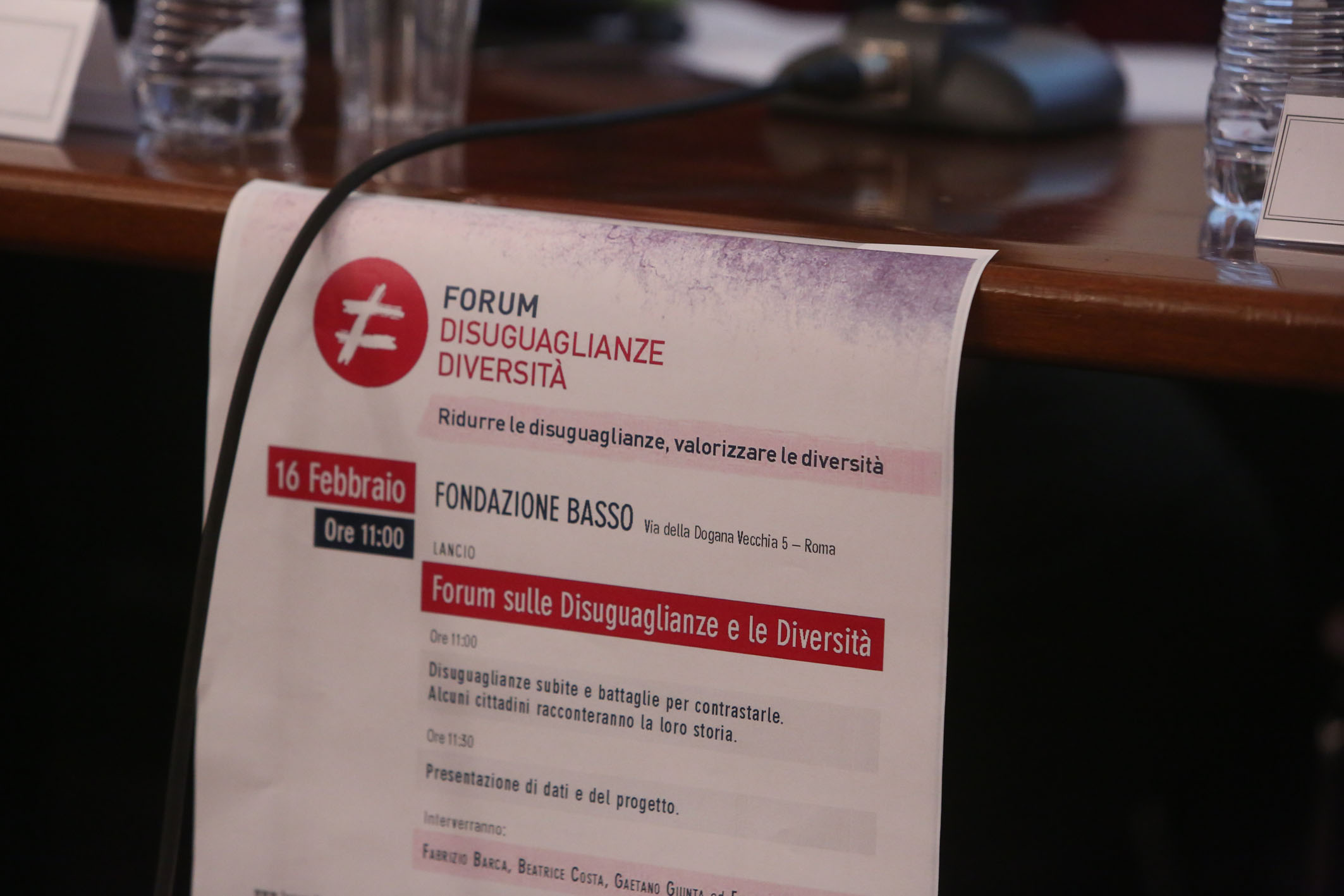 Il Forum Disuguaglianze Diversità è stato presentato durante una partecipata conferenza stampa il 16 febbraio 2018 presso la Fondazione Basso. Il progetto si propone di costruire un luogo di pensiero e confronto per informare, discutere e disegnare politiche pubbliche e azioni collettive che riducano le disuguaglianze, economiche, sociali e di riconoscimento e favoriscano il pieno sviluppo di ogni persona in coerenza con l’articolo 3 della Costituzione Italiana.
