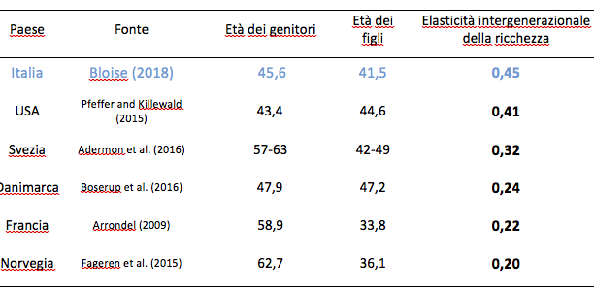 La trasmissione intergenerazionale della ricchezza in alcuni paesi.