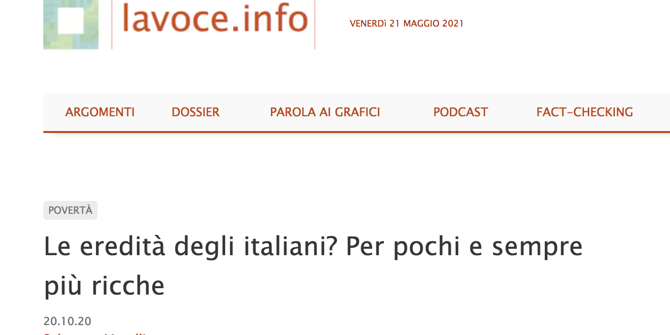 I dati delle dichiarazioni di successione indicano che i patrimoni ereditati non solo aumentano di valore, ma diventano sempre più concentrati nelle mani di pochi. Scende, però, il peso della tassazione su questi trasferimenti. Non è una buona notizia. Questo articolo è stato pubblicato su Lavoce.info (20/10/2020)