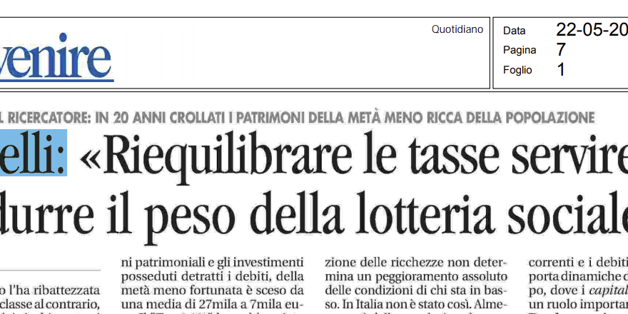 Una migliore tassazione, come anche l’Ocse suggerisce, consentirebbe di ridurre il peso della lotteria sociale e avvicinarsi all’uguaglianza delle opportunità dei cittadini, limitando la cristallizzazione dinastica delle ricchezze. La concentrazione dei patrimoni contribuisce a ridurre la mobilità sociale e può essere alimentata dalle dinamiche dei trasferimenti ereditari in un circolo vizioso”.