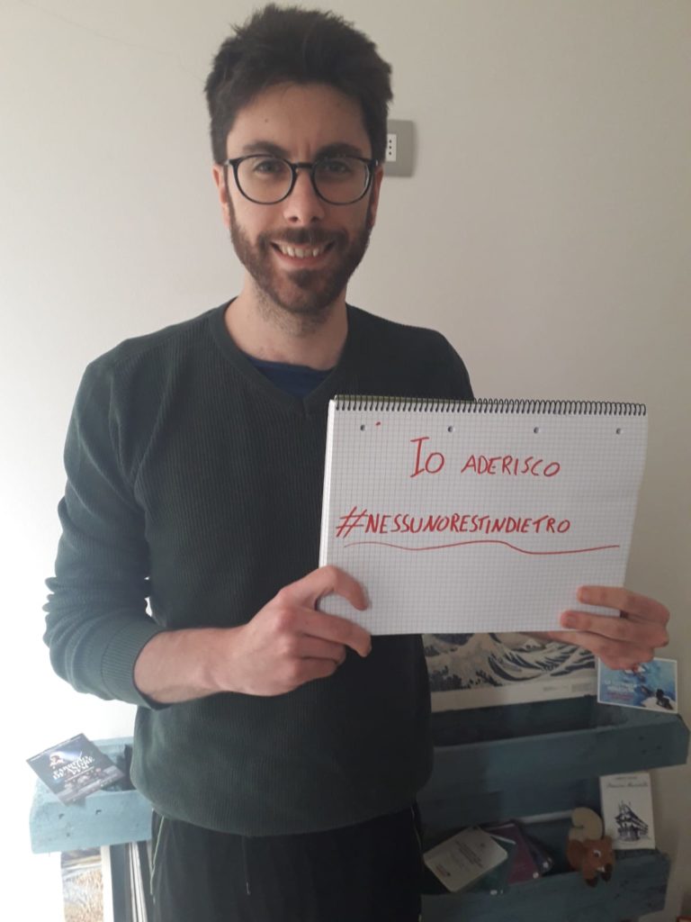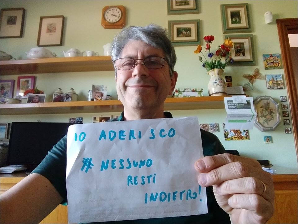 Sostengo #nessunorestindietro perché ho sostenuto tanti lasciati indietro, senza speranze, nel mio lavoro; perché mi sono trovato lasciato indietro da anni con migliaia di altri in Sicilia, senza nessuno che sostenesse noi. Paolo La Carrubba, Presidente di Itinerari per il Lavoro