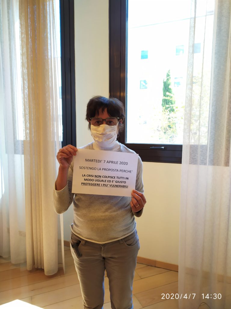 Sottoscrivo e sostengo la proposta perché la crisi non colpisce tutti in modo uguale ed è giusto proteggere i più vulnerabili. Perché la crisi fa emergere quanto pesa la disuguaglianza. Perché è dovere e diritto di ognun@ rigenerare la nostra società con tutti i mezzi che possiamo attuare ORA, per non lasciare nessun@ indietro. Non soltanto a parole.