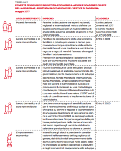 La G7 Roadmap prevede obiettivi ed azioni da intraprendere per promuovere l’empowerment economico delle donne come di seguito riportato nella tabella: