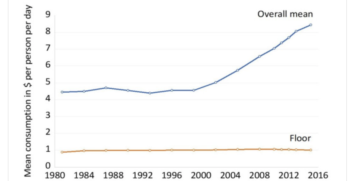 Se persistono gli attuali trend, la povertà estrema (meno di 1.90$ al giorno) non sarà eliminata prima del 2278 perché il reddito dei più poveri non sta quasi crescendo.