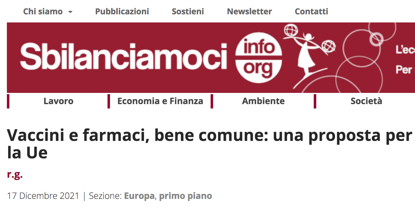 Presentata a Strasburgo la proposta di 50 esperti di farmacovigilanza, fatta propria dal Forum Disuguaglianze Diversità, per istituire un’agenzia europea pubblica per sviluppare e distribuire vaccini anche al Sud del mondo. [Questo articolo è stato pubblicato su Sbilanciamoci il 17 dicembre 2021]